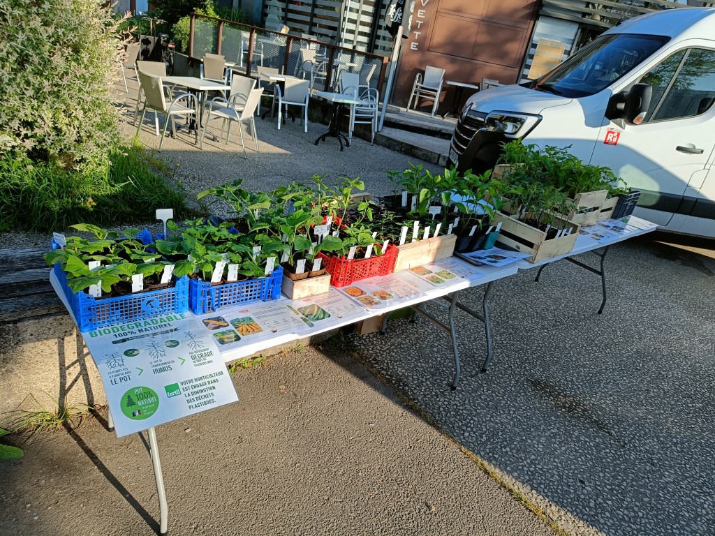 Mon astuce pour briser la glace… Les pots en sciure de bois de chez FERTIL ! Les passants sont toujours étonnés et agréablement surpris de constater que la plupart de mes pots utilisés sont recyclés, compostables et made in France. Effet wow garanti !