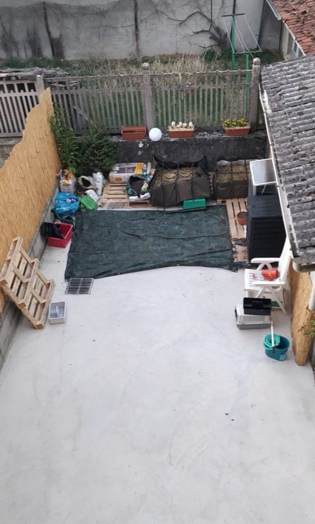 Après trois ans de travail ans la capitale, mon besoin d’espace et de ruralité me pousse à m’installe en Isère, au premier étage d’une petite maison. Pendant mes trois années de présence dans la petite ville de La Tour du Pin, je dispose d’une petite cour bétonnée.